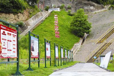 積極培育具有礦山特色的生態文化,凝心聚力,成風化人。2019年8月在尾礦壩開展了建設生態文化主題宣傳,現場定置擺放宣傳展板30余個。公司黨委書記、董事長秦寧昌親自參與這次策劃,推動生態文化引起共鳴,將尾礦壩一側供過往職工歇腳的亭子命名為“永安亭”,并創作了兩幅寓意鮮明的對聯懸掛在亭門上,其中一幅寫道:“留得青山福萬代,守住綠水佑子孫。”