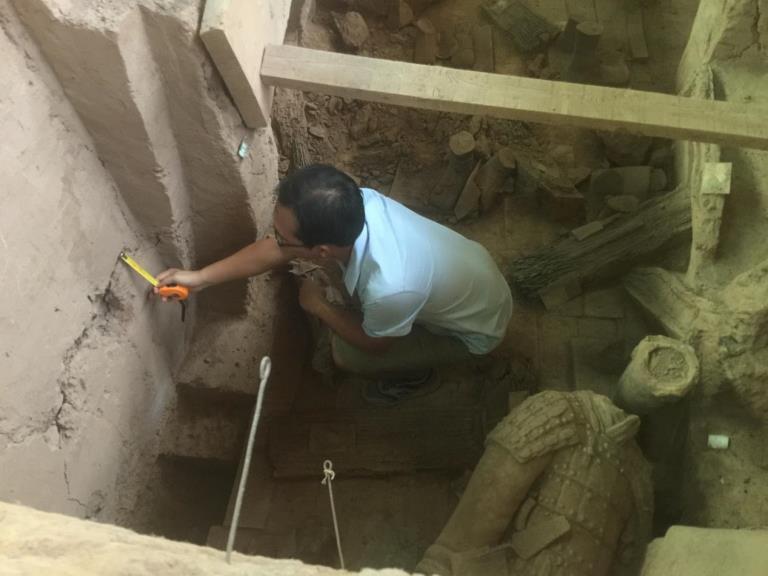 勘測公司技術人員在秦始皇兵馬俑1號坑現場調查測繪