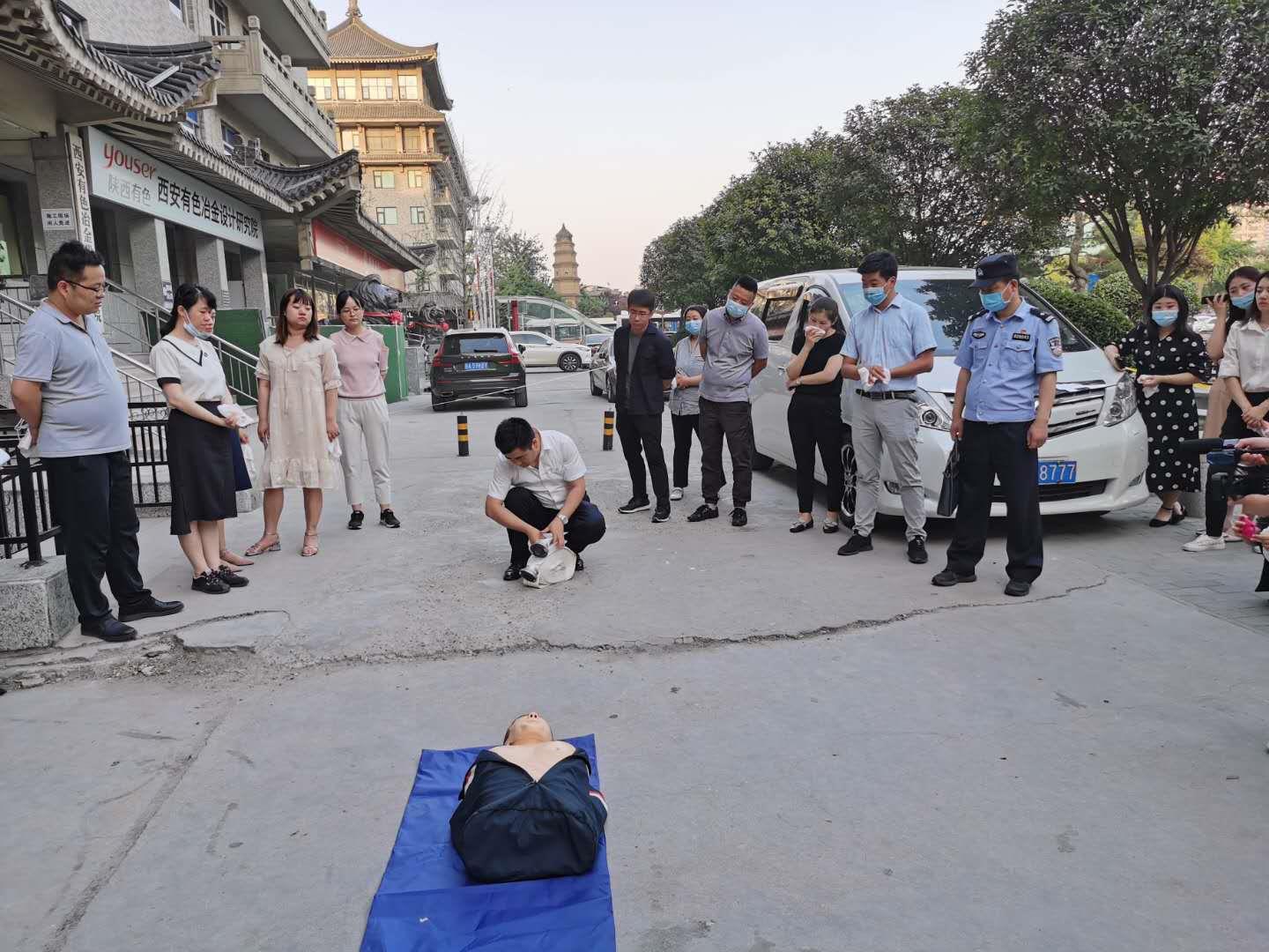 演練結(jié)束后,碑林區(qū)南大街派出所民警對(duì)大家進(jìn)行了現(xiàn)場(chǎng)指導(dǎo),組織員工開(kāi)展規(guī)范使用滅火器和消防水帶拋灑及收帶工作培訓(xùn),并普及了火災(zāi)中的急救知識(shí)。