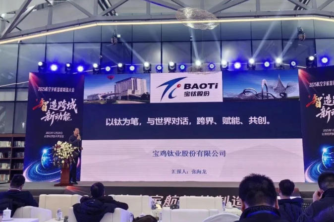 12月28日,2025航空宇航智能制造大會在北京召開。會議聚焦航空航天智能制造技術轉化,匯聚院士、專家學者及低空經濟、新能源汽車等領域領軍企業代表,共同探討新時代下中國航空宇航制造產業的發展新路徑。寶雞鈦業股份有限公司(以下簡稱“寶鈦股份”)總經理張海龍應邀參會并作主題報告。