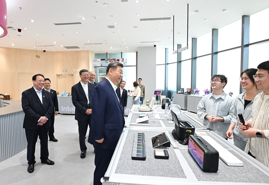 4月29日,中共中央總書記、國家主席、中央軍委主席習(xí)近平在上海考察。這是習(xí)近平在位于徐匯區(qū)的上海“模速空間”大模型創(chuàng)新生態(tài)社區(qū)人工智能產(chǎn)品體驗(yàn)店考察。新華社記者 謝環(huán)馳 攝