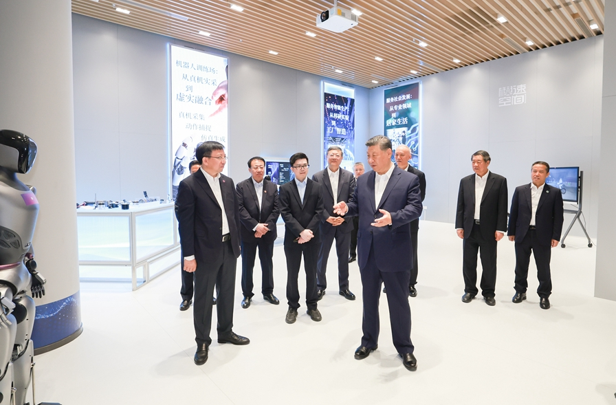 在“模速空間”3層,一場以“下一代智能體的自主進(jìn)化”為主題的沙龍正在舉行。習(xí)近平高興地參與進(jìn)來,同現(xiàn)場青年創(chuàng)新人才親切交流。大家紛紛向總書記匯報(bào)所在團(tuán)隊(duì)開展人工智能技術(shù)研究和產(chǎn)業(yè)應(yīng)用的收獲體會。習(xí)近平對大家說,人工智能是年輕的事業(yè),也是年輕人的事業(yè)。我們正在全面推進(jìn)強(qiáng)國建設(shè)、民族復(fù)興偉業(yè),正是年輕一代展示才華、大顯身手的好時(shí)候。實(shí)現(xiàn)中華民族的偉大夢想,寄希望于年輕人。大家要懷愛國之心、立報(bào)國之志、增強(qiáng)國之能,把個(gè)人奮斗同國家前途命運(yùn)緊緊聯(lián)系在一起,跑好歷史的接力棒,在推進(jìn)中國式現(xiàn)代化的寬廣舞臺上綻放絢麗的青春光彩。
