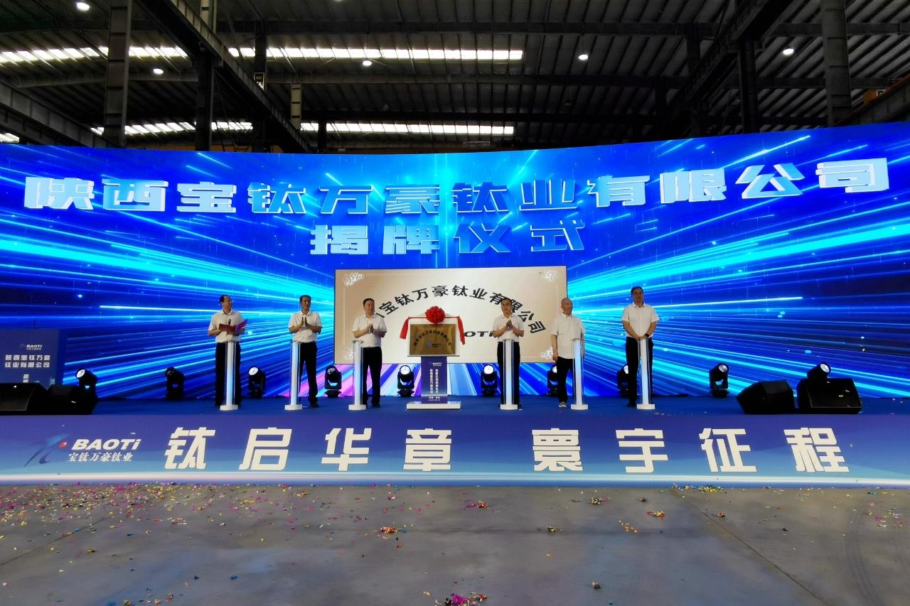 8月26日,陜西寶鈦萬豪鈦業有限公司揭牌儀式在寶雞舉行。陜西有色金屬集團黨委副書記、董事、總經理莫勇,寶雞市人民政府黨組成員、副市長張昭出席并揭牌。