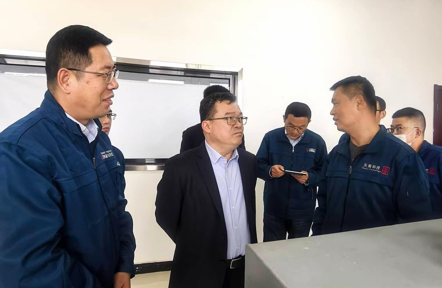 蘇旭盛一行參觀了生產、研發現場,詳細聽取了天策公司關于生產及新產品研發等工作的匯報,并與天策公司班子成員、技術研發部門負責人進行了座談交流。