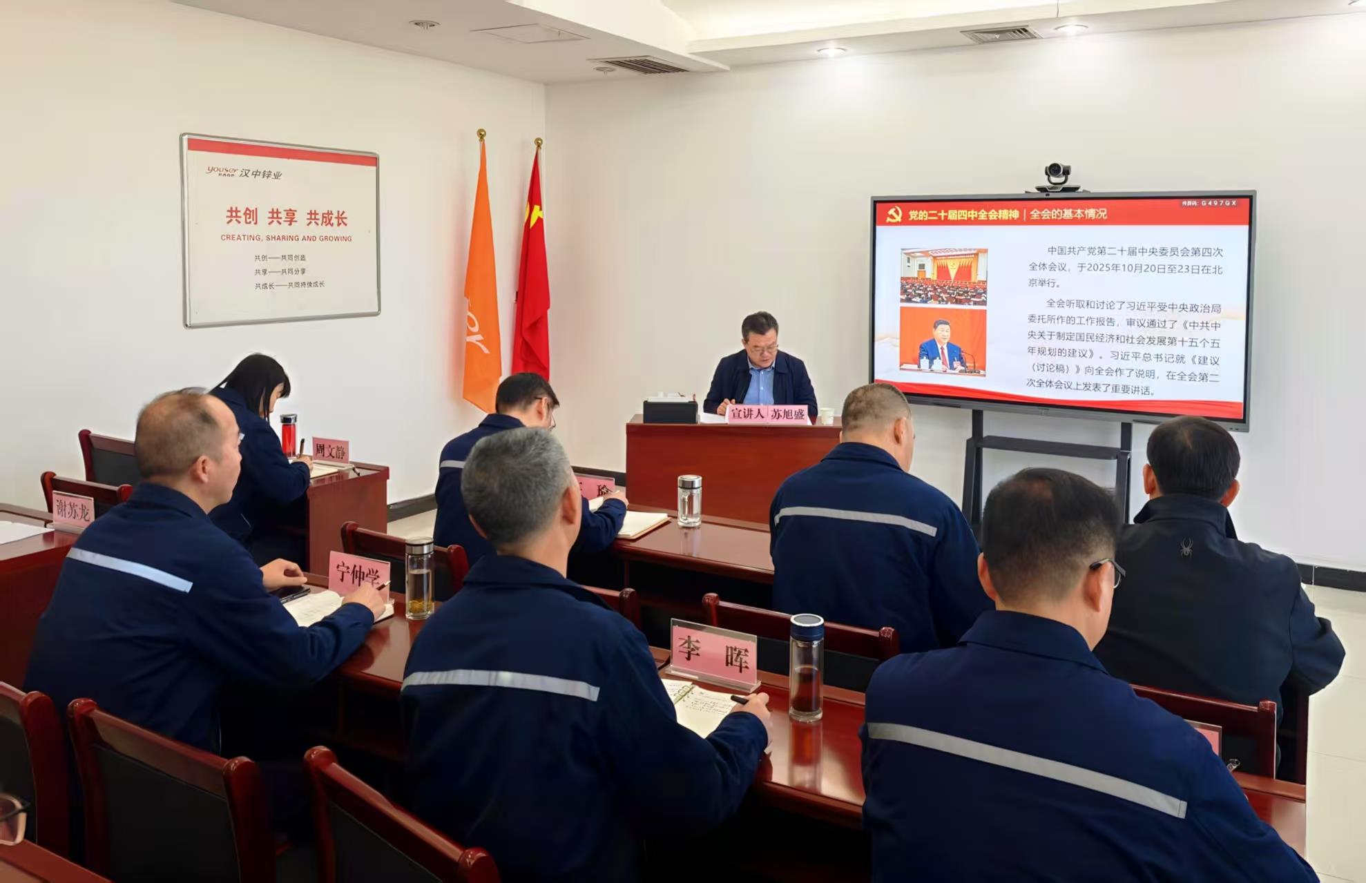蘇旭盛強(qiáng)調(diào),學(xué)習(xí)宣傳貫徹全會(huì)精神,是當(dāng)前和今后一個(gè)時(shí)期的重大政治任務(wù),要準(zhǔn)確把握全會(huì)精神的核心要義,深刻認(rèn)識“十五五”時(shí)期經(jīng)濟(jì)社會(huì)發(fā)展的重大意義,全面對標(biāo)黨中央部署要求,扎實(shí)推進(jìn)全會(huì)精神的學(xué)習(xí)貫徹、“十五五”規(guī)劃編制和當(dāng)前各項(xiàng)重點(diǎn)工作。蘇旭盛要求,一要把學(xué)習(xí)黨的二十屆四中全會(huì)精神轉(zhuǎn)化為推動(dòng)各項(xiàng)工作的強(qiáng)大動(dòng)力,切實(shí)推動(dòng)漢中鋅業(yè)高質(zhì)量發(fā)展;二要抓實(shí)年末歲尾安全生產(chǎn),確保全面完成年度目標(biāo)任務(wù);三要科學(xué)謀劃“十五五”規(guī)劃與2026年工作,扎實(shí)推進(jìn)重點(diǎn)工作落地見效。