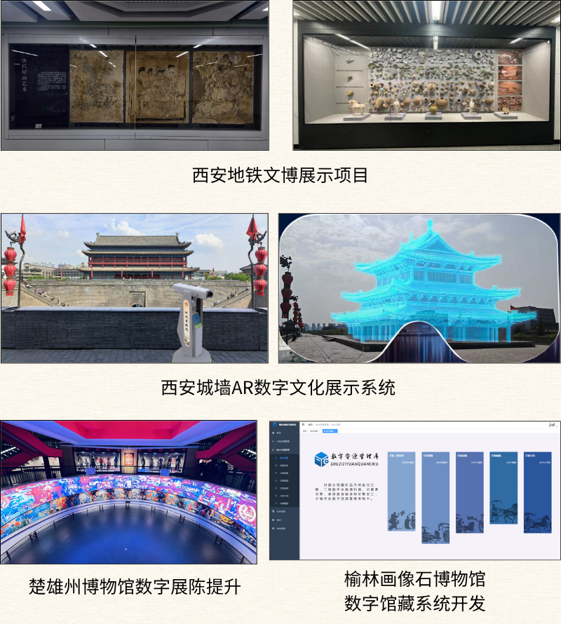 工程公司堅持“產、學、研”一體化發展,組建西北有色文化遺產保護與數字化科技創新中心,持續推動科研成果轉化。先后斬獲實用新型專利6項、發明專利1項、省級科技成果登記11項,成功開發文物數字化保護、數字化利用、展陳設計、文創產品研發、工業仿真等多元業務模式。運用三維激光掃描、高清成像、AR/VR、軟件開發、數字內容制作等技術,為客戶提供旅游宣傳、景區互動導覽、館藏數字信息管理等全方位服務,攜手西安地鐵打造青龍寺、萬壽路等站點“一瞥式”文博展,構建安仁坊、西安城墻等多處AR望遠鏡數字文化展示平臺,開發榆林市漢畫像石博物館數字館藏系統,以科技為文明傳承注入新活力。