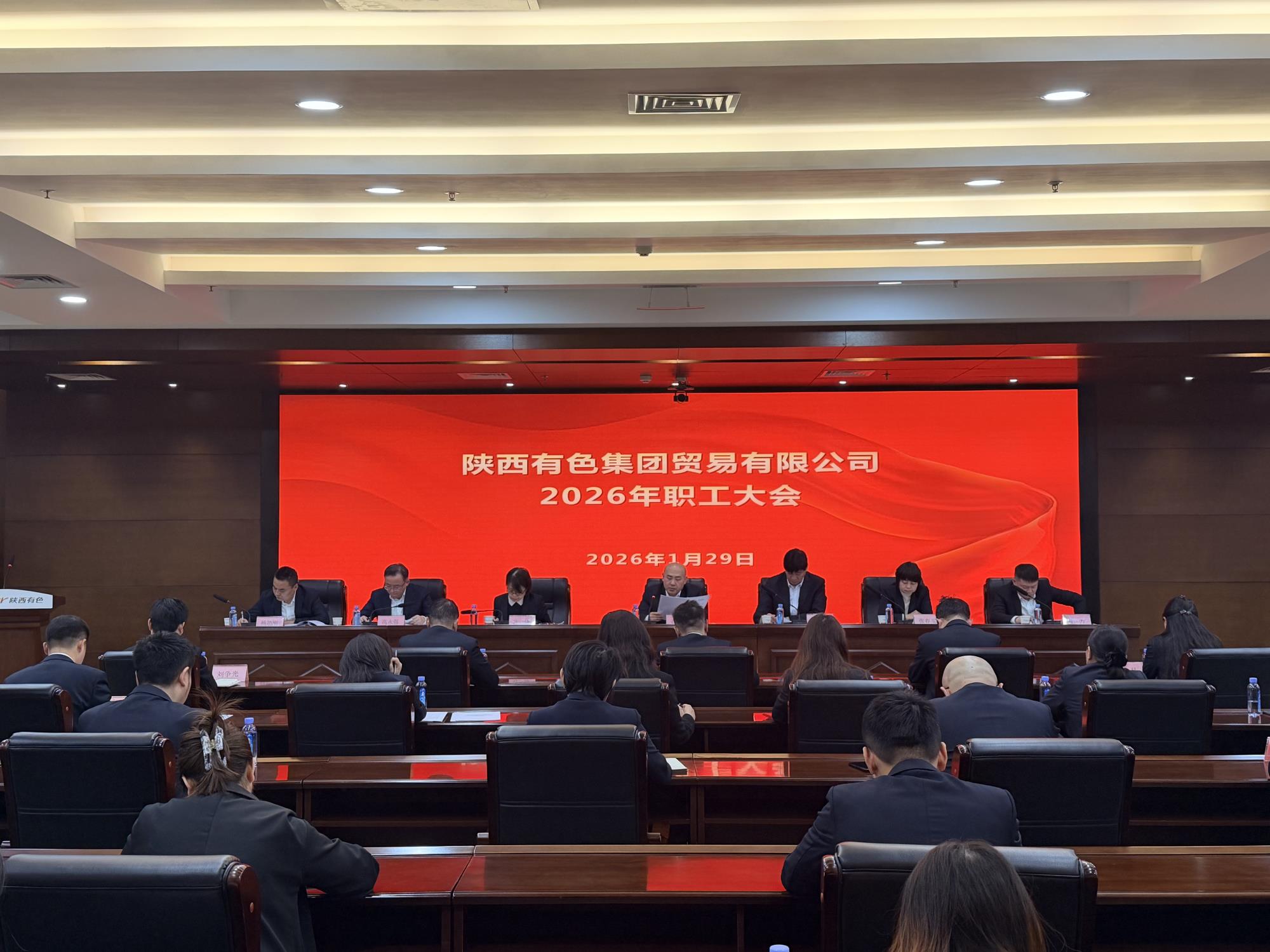 1月29日,陜西有色金屬集團貿易有限公司召開2026年職工大會,傳達學習集團公司三屆四次職代會暨2026年工作會議精神,總結回顧2025年工作,安排部署2026年工作重點,分析當前面臨的形勢和困難,動員全體干部職工進一步統一思想、服從大局、服務集團、凝心聚力、錨定年度任務目標,推動公司改革轉型。