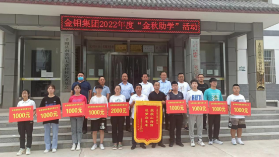 8月23日,金鉬集團(tuán)2022年“金秋助學(xué)”活動資金發(fā)放儀式在定點(diǎn)幫扶村千陽縣南寨鎮(zhèn)大寨村舉行,9名考取大學(xué)本科的大寨村籍學(xué)生,獲得集團(tuán)助學(xué)金共計1萬元。