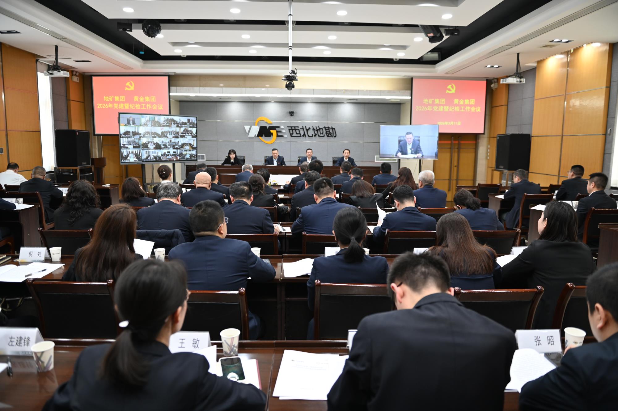 3月11日,地礦集團、黃金集團召開2026年黨建暨紀檢工作會議,深入學習貫徹習近平總書記在二十屆中央紀委五次全會上的重要講話精神、十四屆省紀委五次全會精神,傳達落實陜西有色金屬集團2026年黨建暨紀檢監察工作會議精神,全面總結兩集團2025年黨建及紀檢工作,安排2026年重點工作。地礦集團、黃金集團黨委書記、董事長,地礦集團總經理陳超出席會議并講話,黃金集團黨委副書記、董事、總經理龔甦文主持會議。