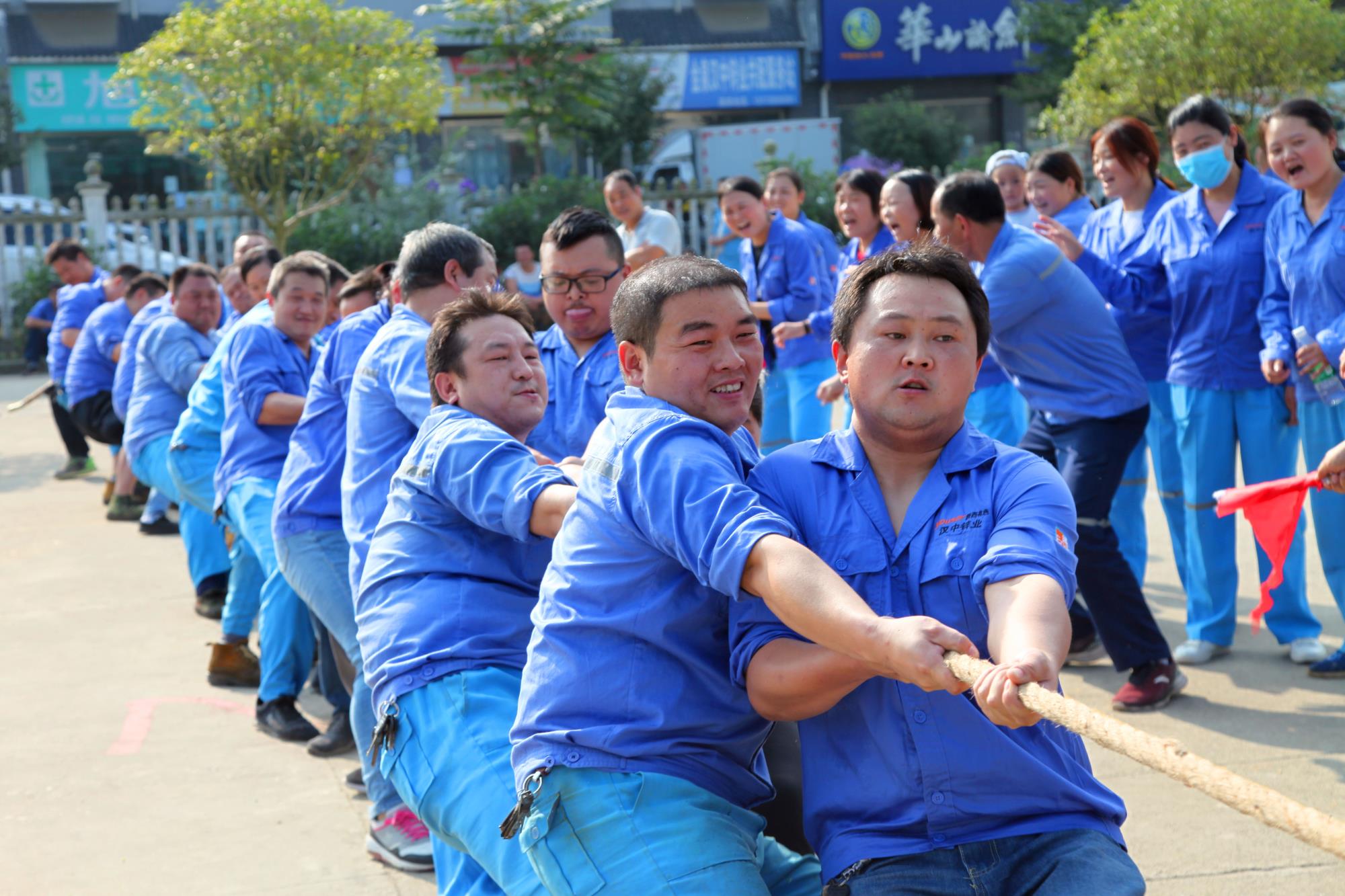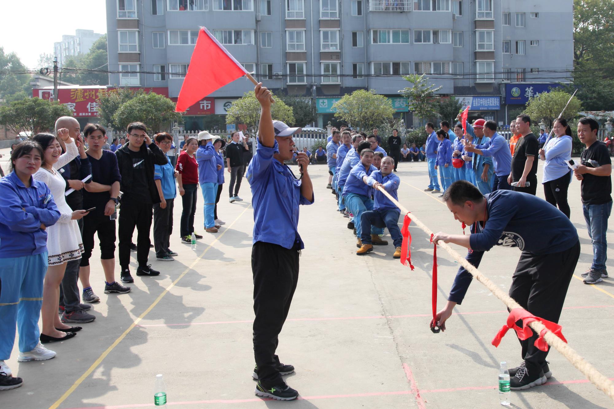 金風送爽,丹桂飄香。下午14時30分,公司總部職工文化活動中心人聲鼎沸,熱鬧非凡。拔河比賽在緊張、激烈的氣氛中開始,在宣布完比賽規則,隨著裁判一聲哨響,比賽現場立刻沸騰起來。加油聲此起彼伏,一浪高過一浪!在拉拉隊的“加油”助威聲中,每支參賽隊都卯足了勁,隊員們都漲紅了臉,大家都抓緊了繩,全力以赴,激烈的比賽將整個活動推向了一個又一個高潮!