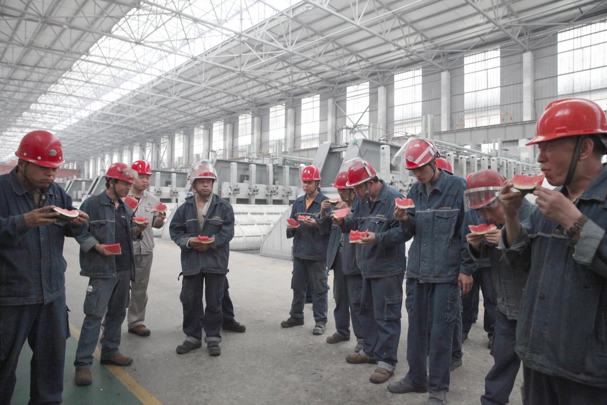 “師傅,辛苦了!來,吃塊西瓜解解暑。高溫天氣再加上高溫的工作環境,一定要多補充水分,做好防暑降溫工作,照顧好自己的身體......”