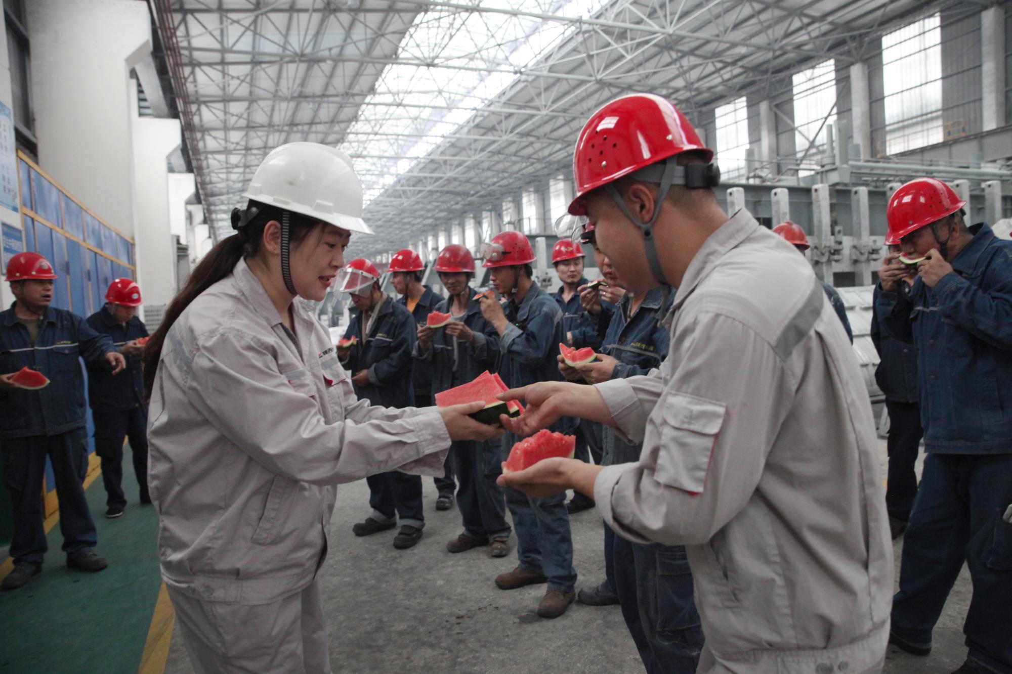 連日來驕陽似火,高溫天氣持續籠罩,陜西美鑫鋁鎂合金分公司生產一線一派繁忙景象,“奮戰二季度 實現雙過半”活動正如火如荼的進行著。陜西美鑫公司女工委積極響應公司黨政號召,6月14日下午,在鋁鎂合金分公司電解一、二車間開展“戰酷暑、保安全 與一線職工肩并肩”夏季送清涼活動,為奮戰在高溫一線的職工送去一絲清涼和一份關懷。