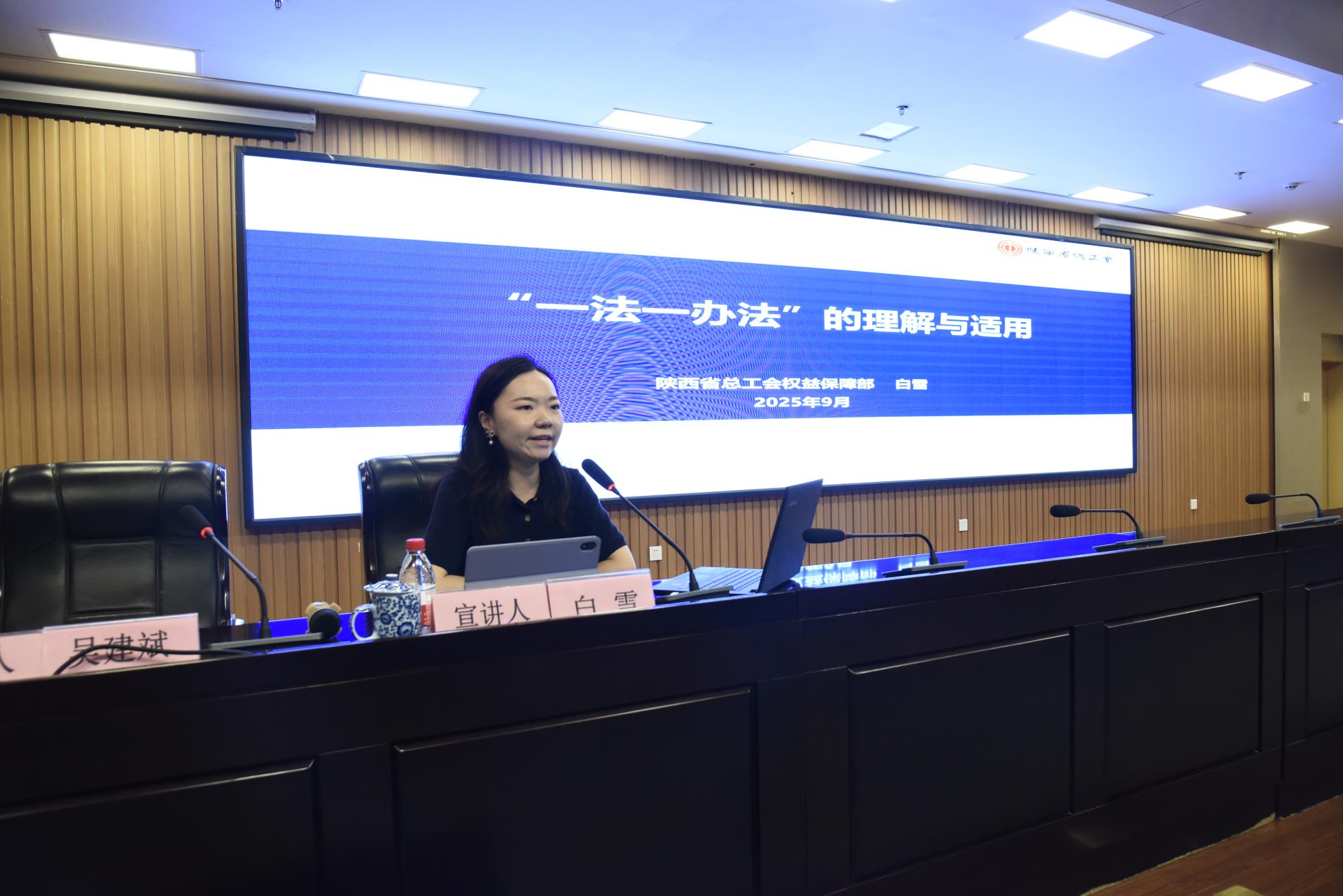 宣講圍繞《中華人民共和國工會法》與新修訂的《陜西省實施<中華人民共和國工會法>辦法》(以下簡稱《實施辦法》)的修訂背景、重要意義展開解讀,詳細梳理工會組織基本原則、主要任務、權利義務、財產經費及法律責任等關鍵條款,重點闡釋《實施辦法》貼合陜西產業實際的亮點特色,助力與會人員精準把握法規要義。宣講結束后,各企業工會表示將當好 “宣傳員”“實踐者”,推動法規精神覆蓋車間一線,以法治手段優化工會工作、維護職工權益。