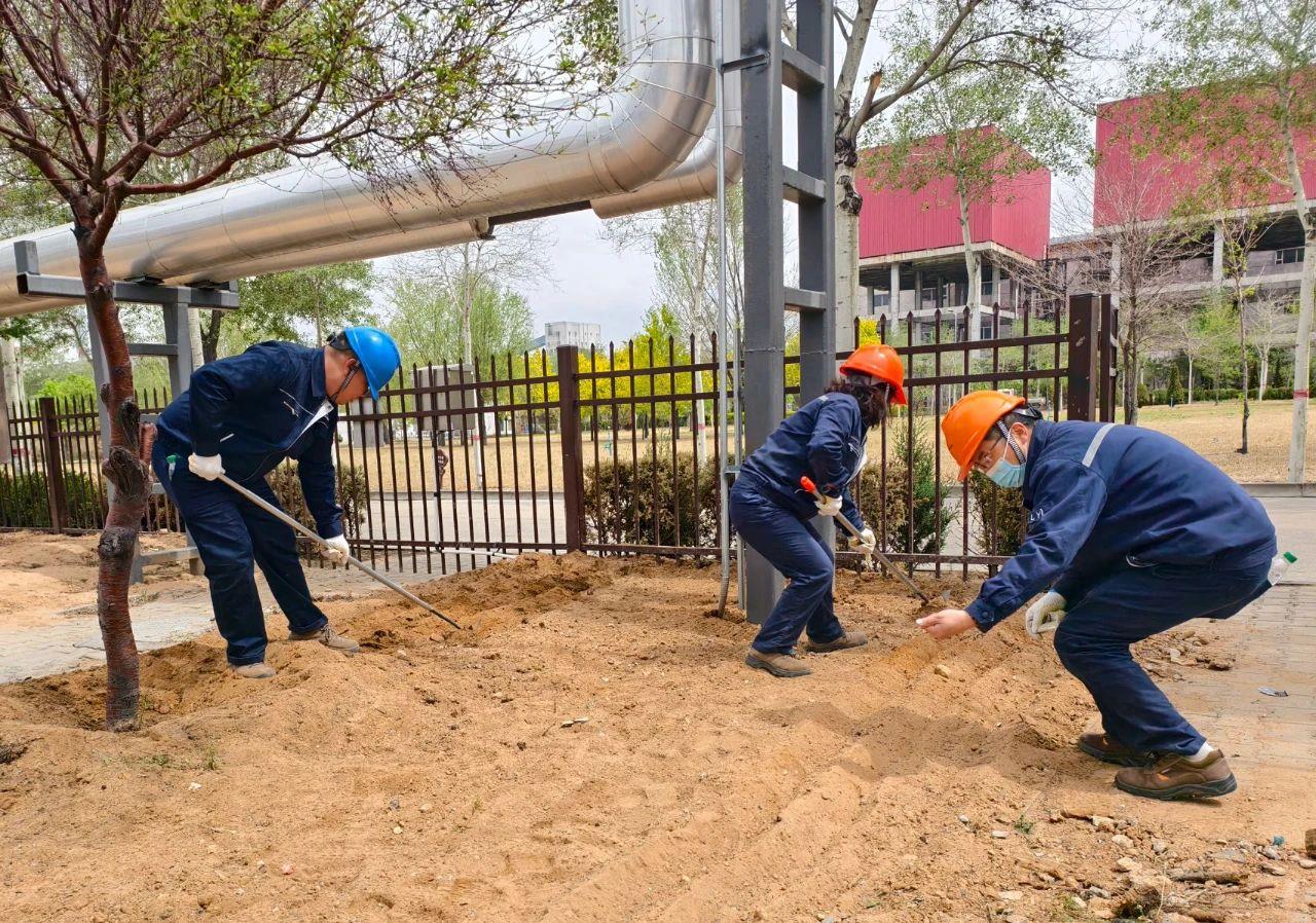 勞動現場,黨員、團員們分組協作、默契配合,積極投入到“綠化+美化+文化”的多維實踐中,掀起熱火朝天的勞作熱潮。大家手持鋤頭、鐵鍬、耙子,先對場地進行全面除草、松土,仔細清理雜草碎石,為后續種植掃平障礙;修剪樹枝、樹坑圍堰等工作同步推進,黨員帶頭沖鋒,團員青年緊隨其后,以“不怕苦、不怕累”的勁頭攻克每一道工序。