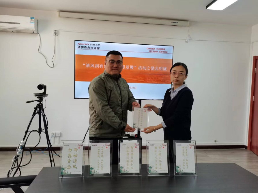活動現場,西安有色冶設計研究院結合機關各業務部門和生產經營各單位崗位特點,開展了廉潔從業學習討論,與每名與會黨員領導干部簽訂了廉潔承諾書,并為各子公司、機關各職能部門負責人發放了廉潔警示牌。