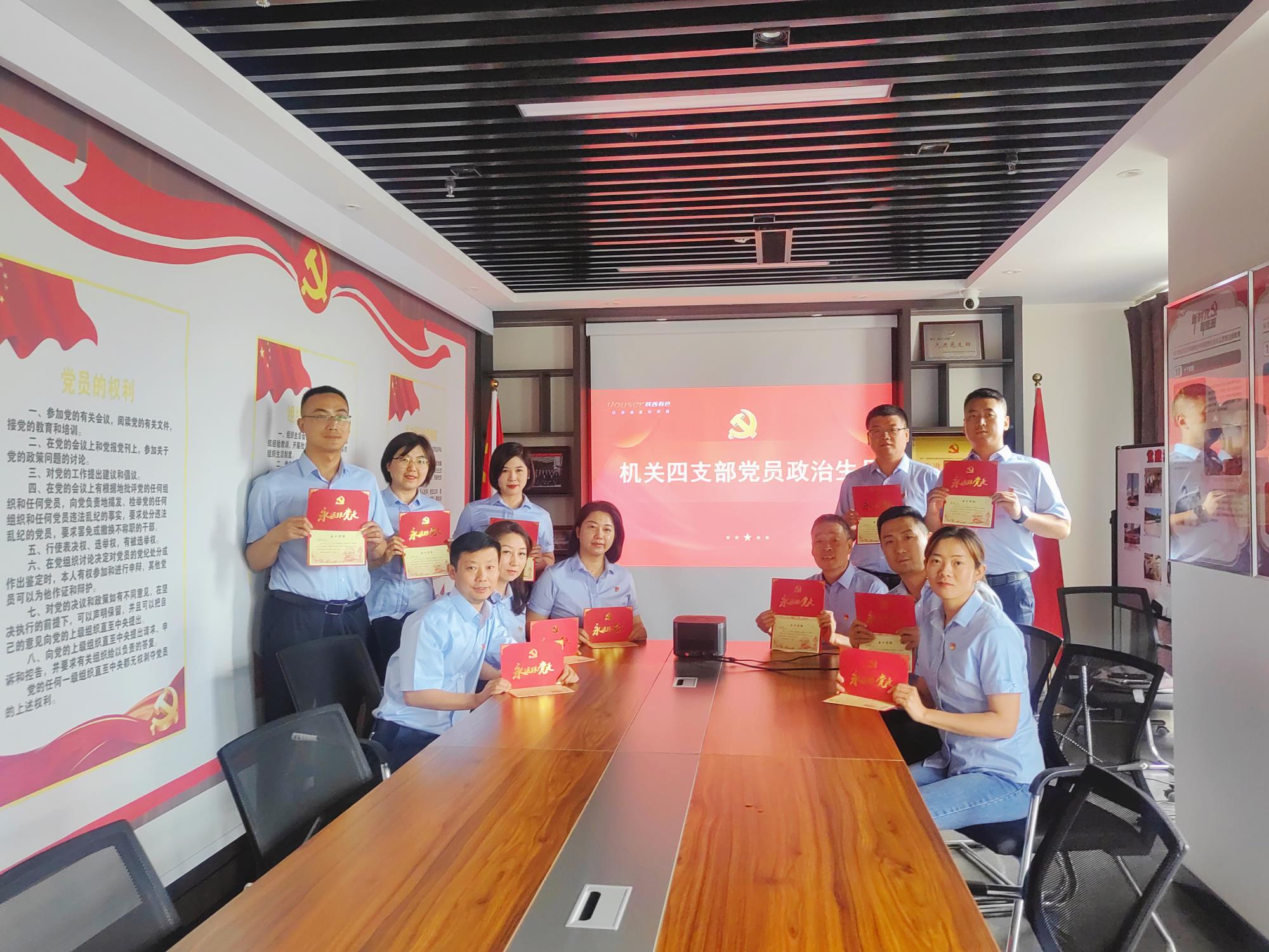 為進一步強化黨員身份意識和責任意識,教育黨員干部堅守入黨初心,汲取奮進力量,黨課結束后,按照機關四支部2023年“主題黨日+”活動安排,機關四支部為全體黨員開展集體過“政治生日”活動。支部書記陳桂瓊同志為支部黨員分別贈送支部精心準備的“政治生日”紀念卡,卡片內頁印有“入黨誓詞”和對每名黨員的“生日寄語”,激勵大家牢記入黨誓言,不忘初心、牢記使命,用理想之光照亮奮斗之路,以信仰之力開創事業新篇,以昂揚的斗爭精神推動集團公司紀檢監察和巡察工作高質量發展,為集團公司改革發展提供堅強政治保障。
