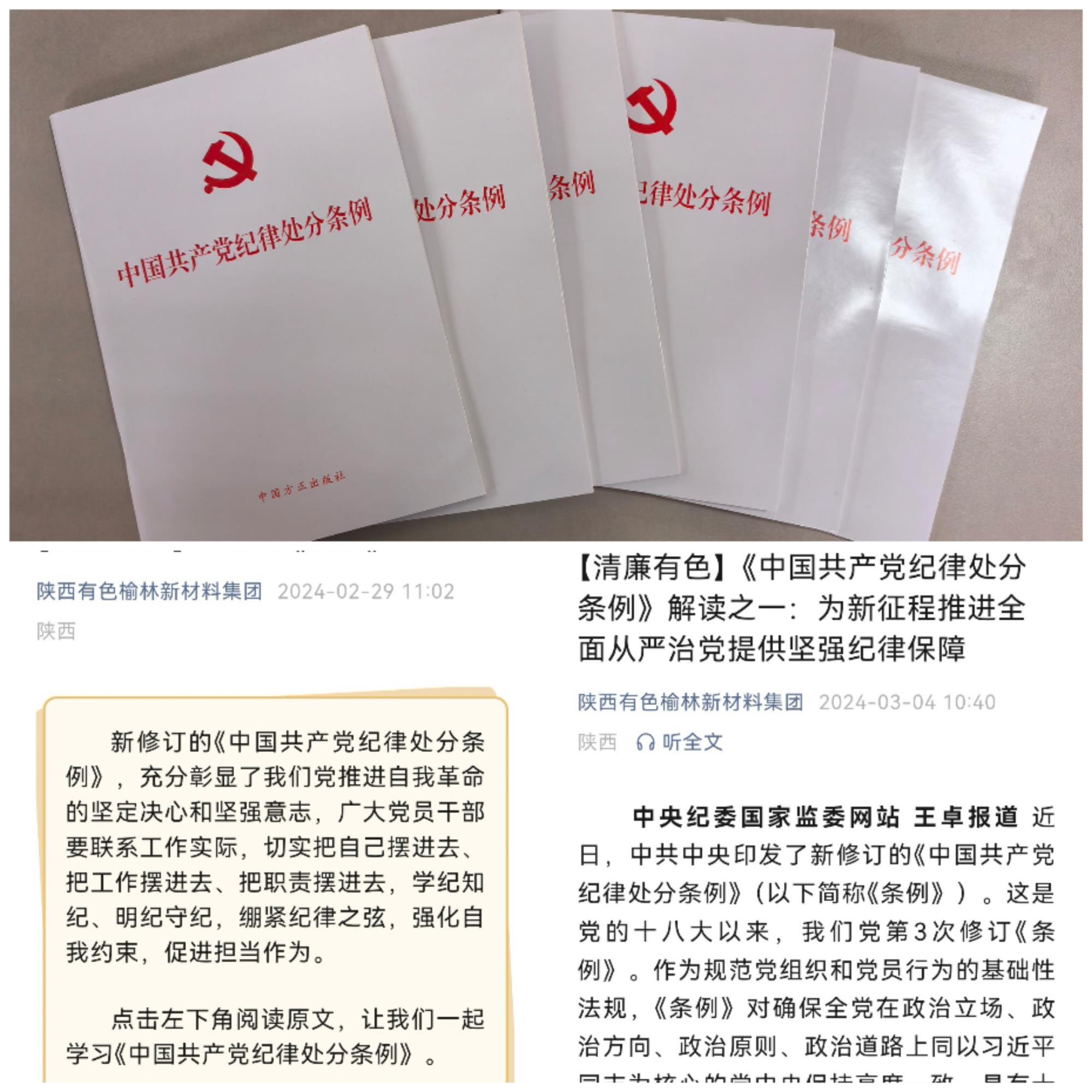 新修訂的《中國共產(chǎn)黨紀律處分條例》印發(fā)以來,榆林新材料集團紀委始終把學習貫徹《條例》作為一項重要政治任務(wù)和深入貫徹落實二十屆中央紀委三次全會精神及十四屆省紀委三次全會精神的重要舉措,切實發(fā)揮職能作用,主動做學習貫徹《條例》的實踐者、推動者、監(jiān)督者。